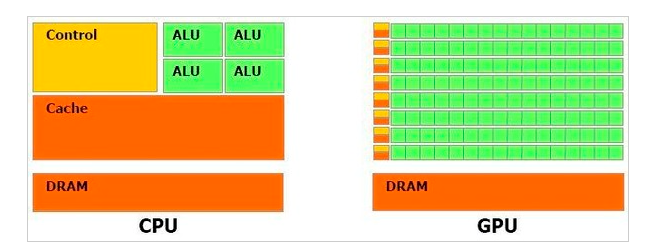 - CPU와 같은 역할이지만 CPU가 복잡한 연산을 처리하기 위해 연산 속도에 집중한 반면 GPU는 '쉬운 작업을 대량으로 처리'한다는 차이가 있다.