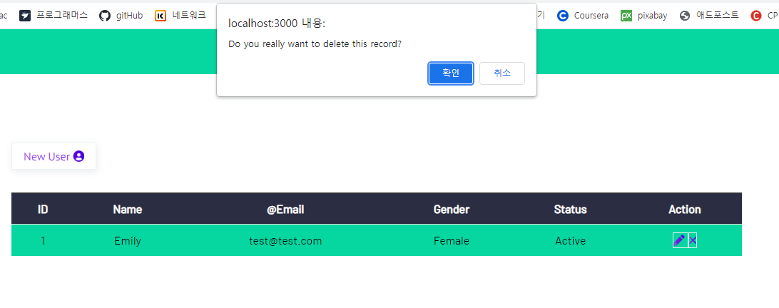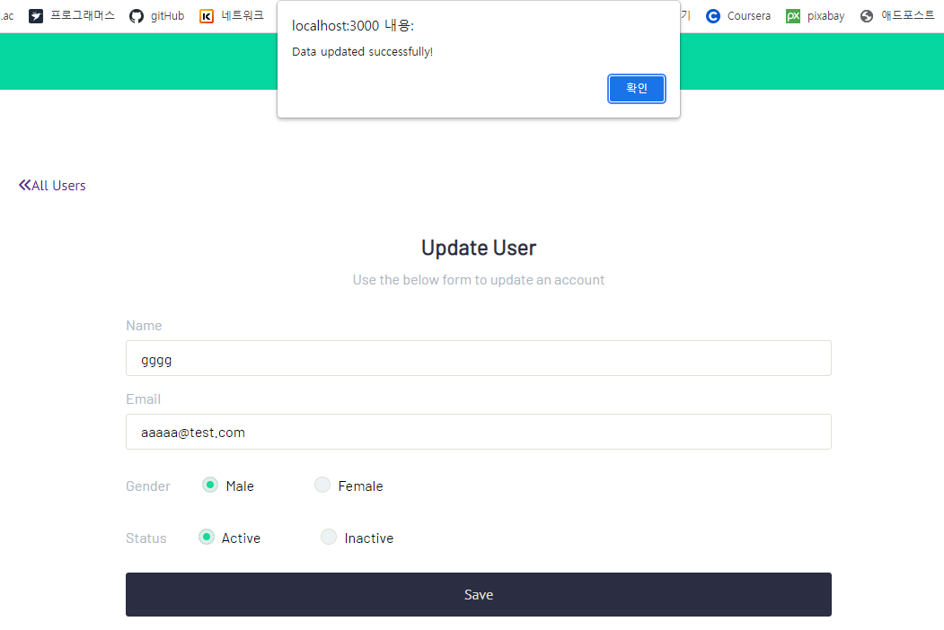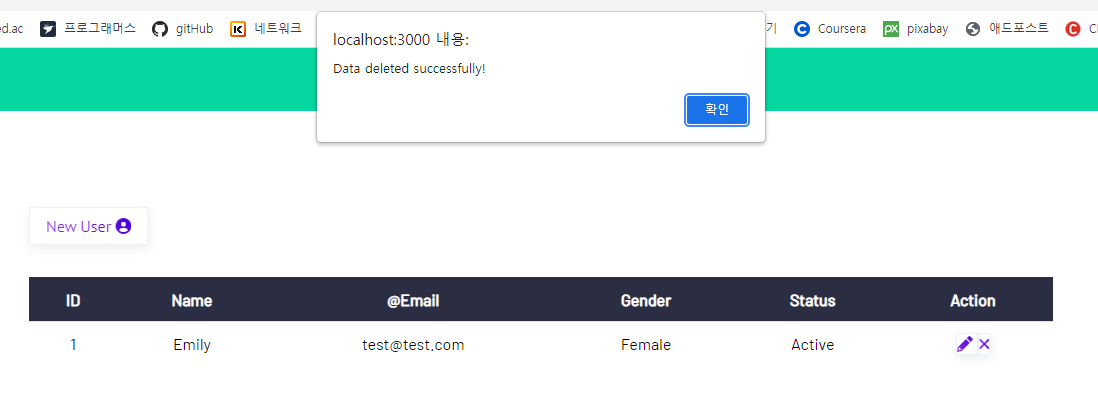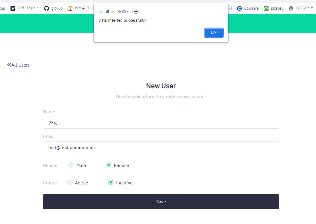 여기서 jQuery로 user 성공적으로 생성되었따고 alert주기