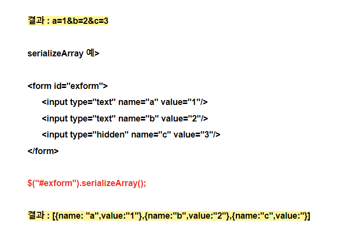 jquery에서 serializeArray()는 form 에서 <input name="" value=""> 를 객체 직렬화 함
