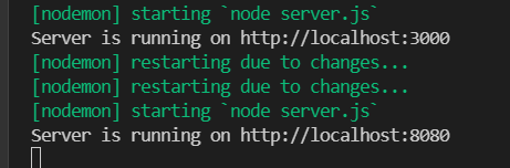 - package.json 의 "scripts" - "start": "node server.js" 를 -> nodemon server.js 로 변경