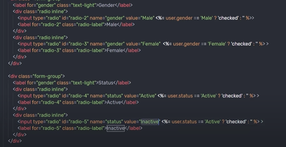 <input type="radio" id="radio-5" name="status" value="Inactive" >