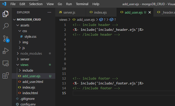 - MONGODB_CRUD > views 폴더 생성 (모든html 파일)